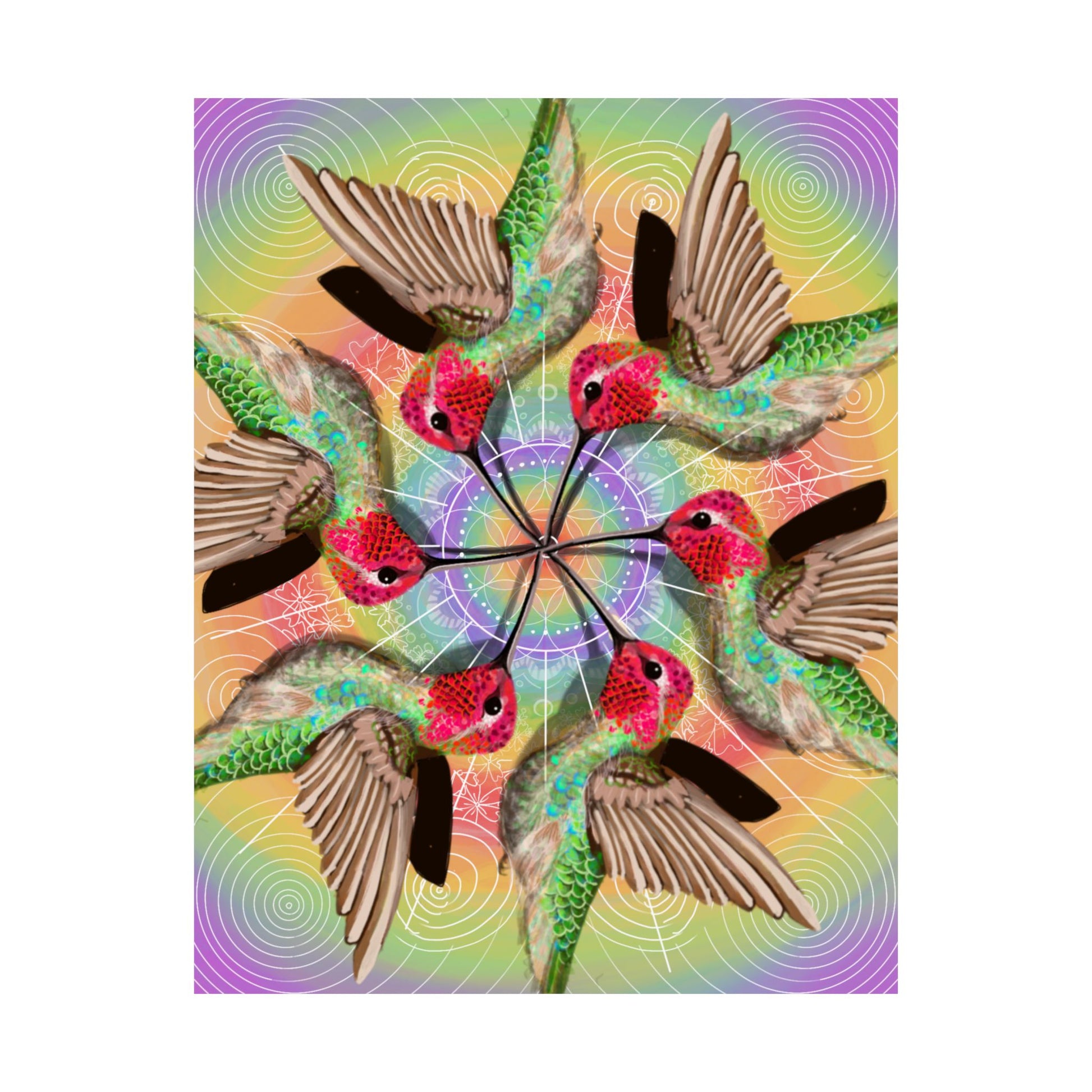 Her medicine is joy-seeking, heart-opening, and delightfully lightweight. If heaviness has been trying to stick to you, Hummingbird brings levity. If your mind has been looping, she calls you back into ananda—the bliss of being. This guide invites you to pay attention to what feels sweet, beautiful, and alive. Notice what you notice. Follow what sparks. Choose color, vibrancy, and little moments of delight as a devotion to your aliveness. Hang this print anywhere you want to call in joy, brighten the energy of a room, or reconnect with your own inner light.